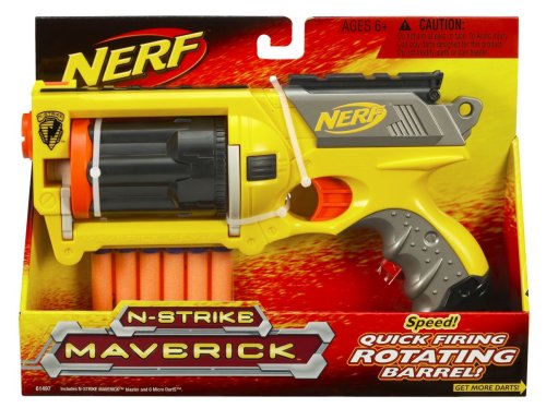 The Maverick is a part of the N-Strike team, so you can snap it onto the Unity Power System (sold separately) and ratchet the NERF action up another notch. This incredibly cool Maverick blaster has a six-dart barrel with flip-open action for easy loading that puts you right back in the game. Blaster comes with six darts and instructions.