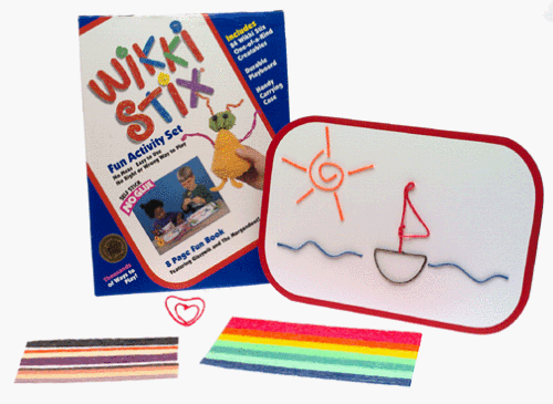 Make critters and creatures, make a Wikkidoodle, create funny faces, make 3-D creations, play travel games, spin and create in the Do-Wikki Game, decorate cans and bags, and design cards.
